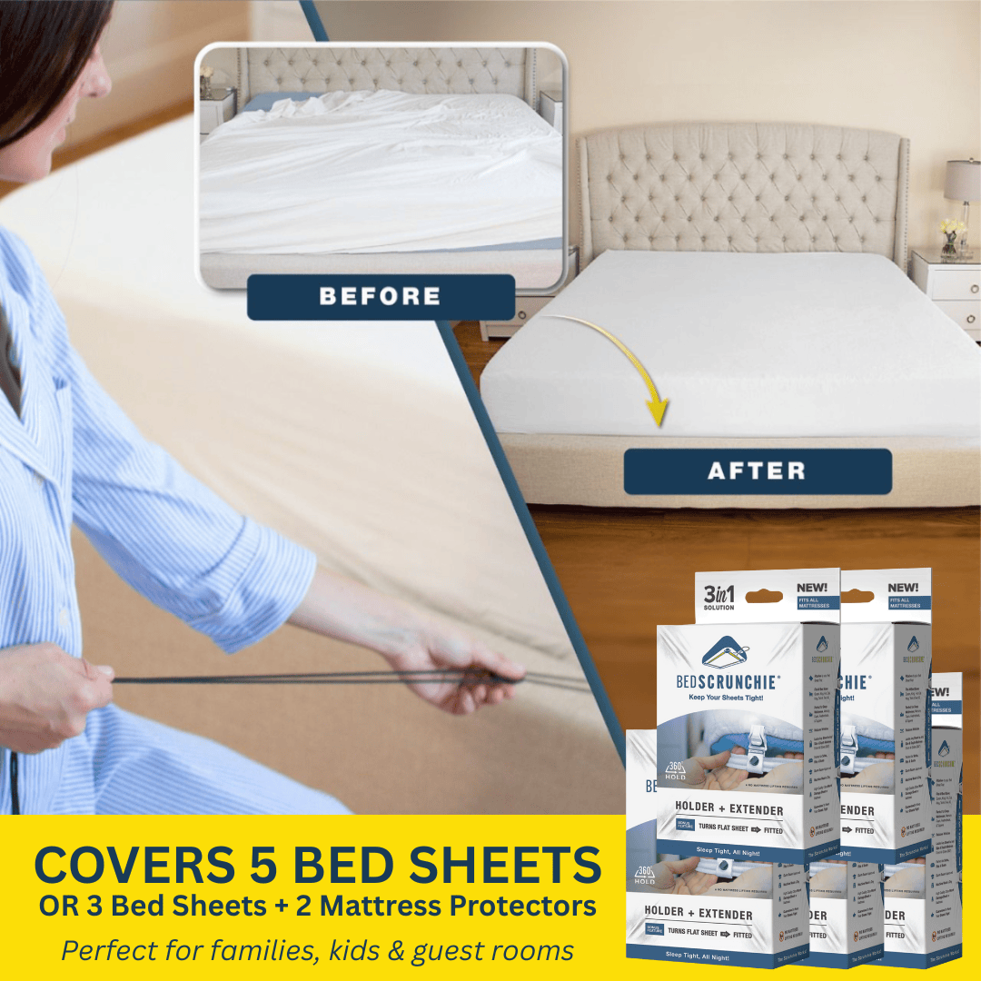 Experience the ultimate comfort and convenience with Bed Scrunchie. Say goodbye to messy, untucked sheets and hello to a blissful night's sleep. Transform any sheet into a fitted one effortlessly. Embrace the perfect balance of strength and softness, keeping your sheets securely in place. Elevate your sleep experience with Bed Scrunchie today!
