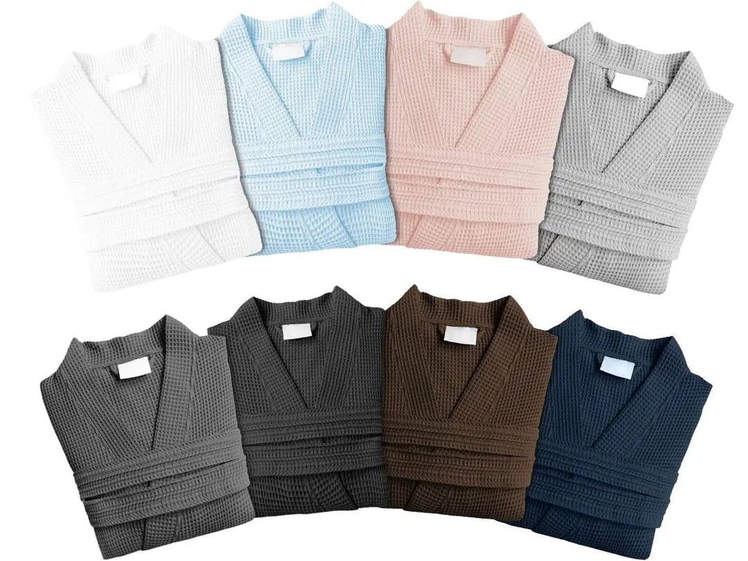We believe that relaxation should be as unique as you are. Introducing our Kimono Waffle Robe collection, available in a stunning array of eight captivating colors — Black, White, Dark Gray, Light Gray, Navy, Sky, Chocolate, and Pink. With these eight colors to choose from, you can select the robe that perfectly complements your taste and mood.
